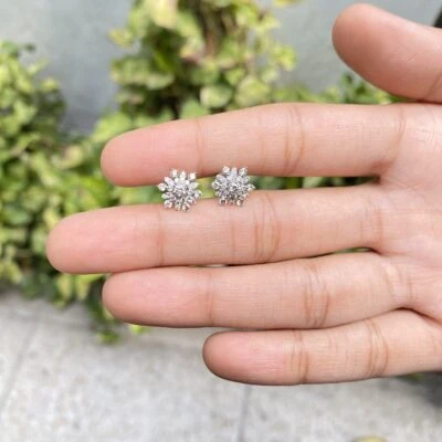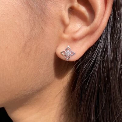 Kat Diamond -To give you an elegant look we have Kat SIamond Studs in our white gold collection. With a gross weight of 4.15 grams, this Kat diamond stud is made in 14 kt gold with 78 diamonds weighing 0.87 carats. This white gold diamond jewellery is meticulously crafted with perfection and is available above 30k at our store.