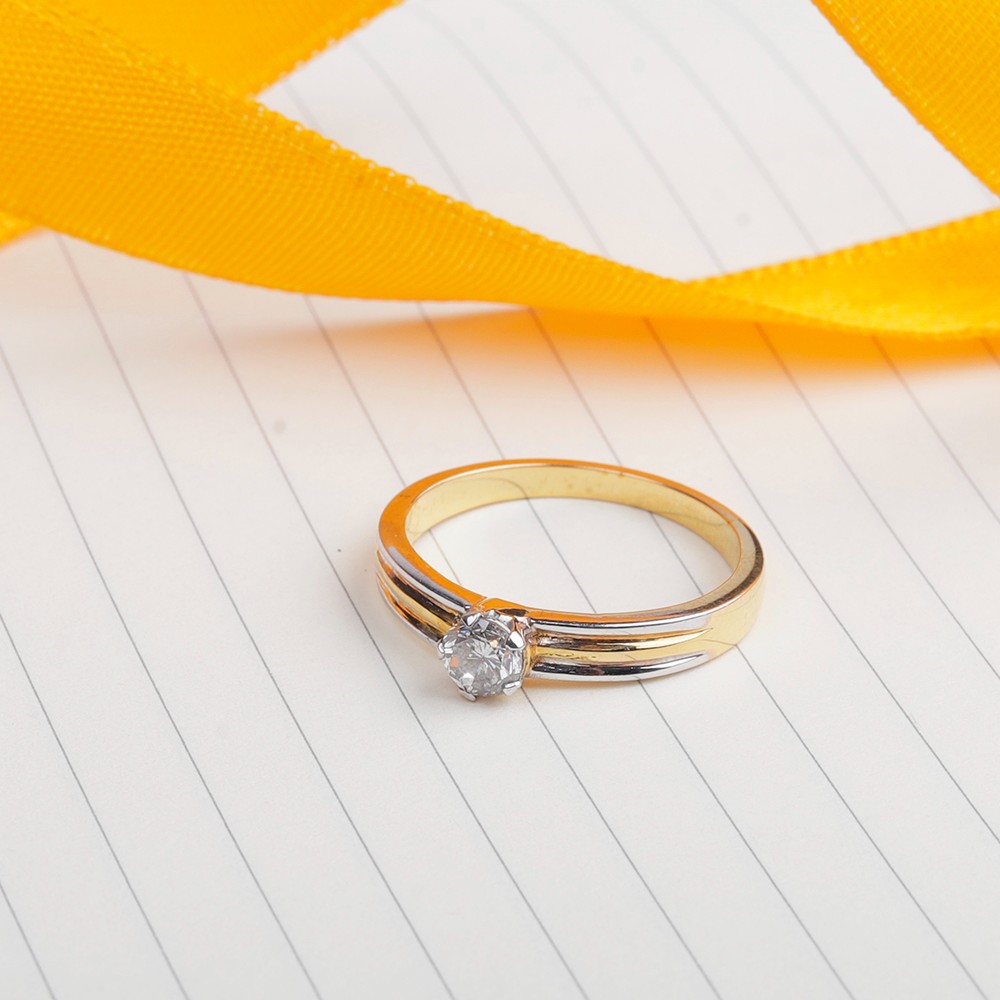 Made in 14 karat yellow gold with a single diamond wieghting 0.36 carat, this is perfect example of simple yet elegant solitaire diamond ring.