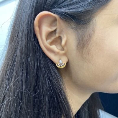 Light weight earrings with 14 diamonds set in 14 karat gold.
