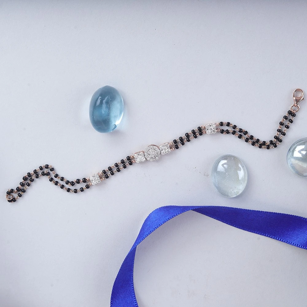 Cluster of diamonds set in a way to look like a solitaire in this Cluster diamond hand mangalsutra.