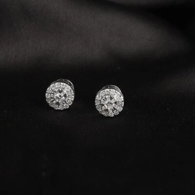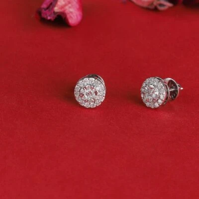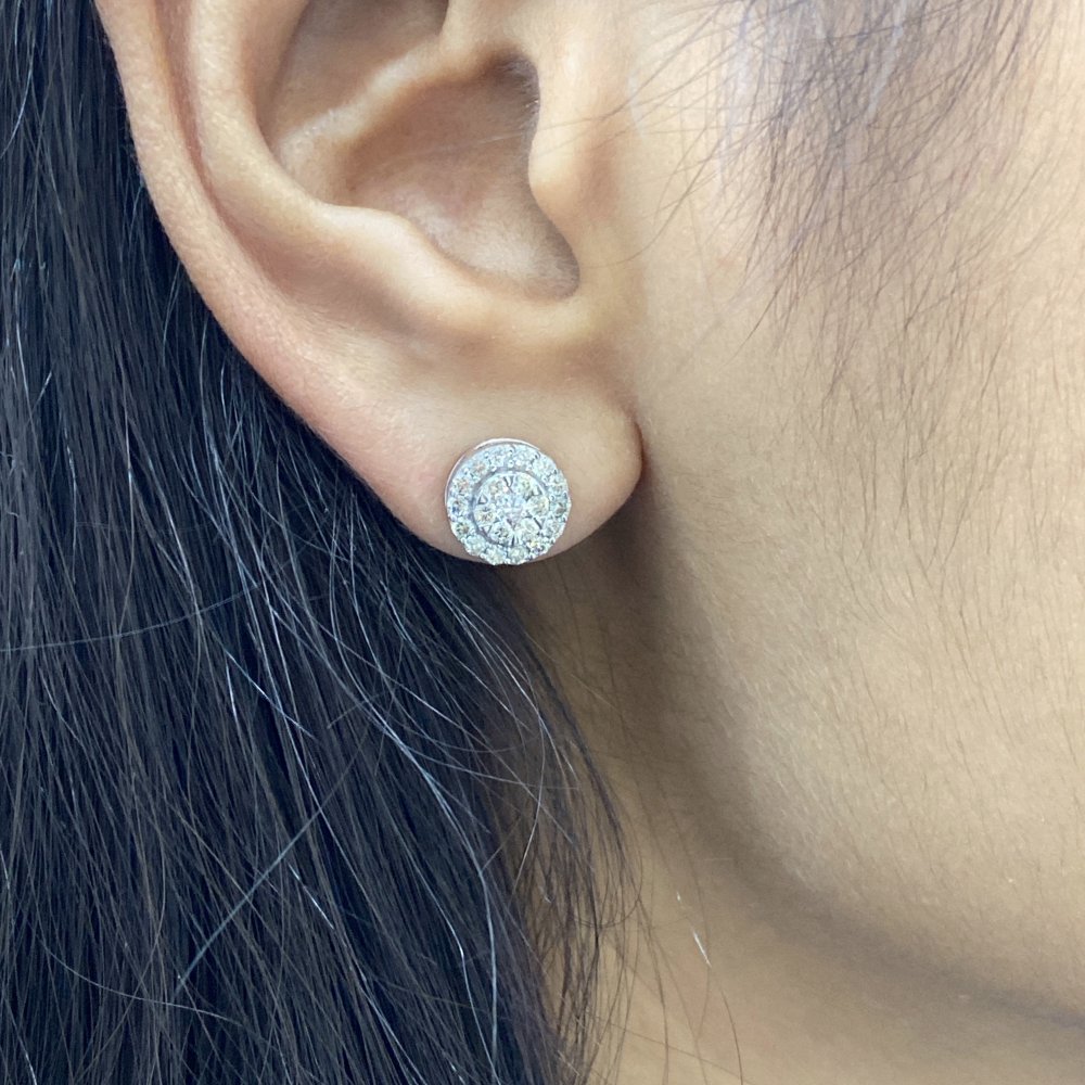 These light weight Dia cluster diamond earrings are made in 14 karat gold with 42 diamonds weighting 0.73 carat.