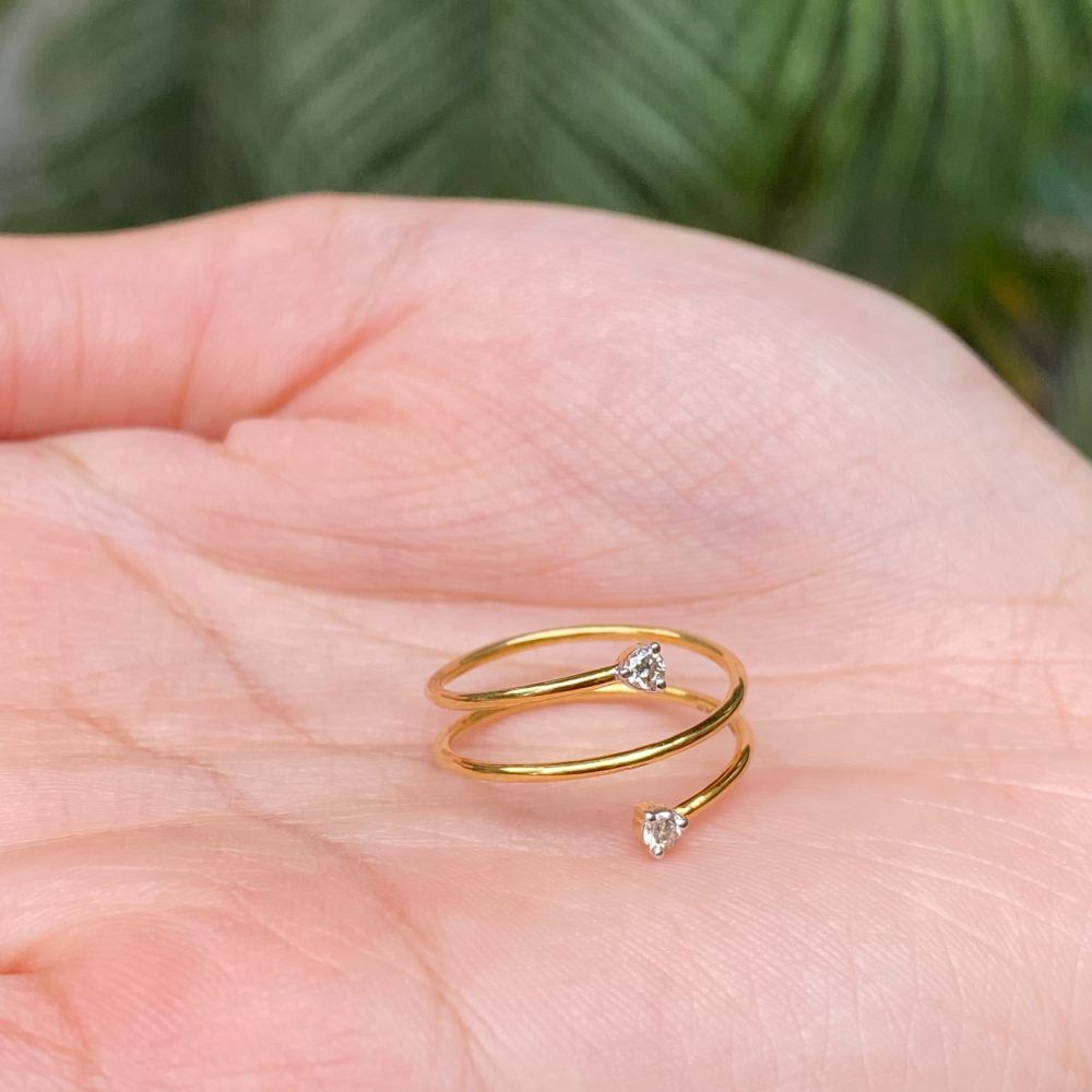 Refined and versatile, our Dual Encircled Diamond Ring, featuring two diamonds, adds a touch of elegance to office attire. Its understated sophistication seamlessly complements any professional ensemble.