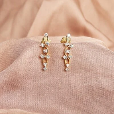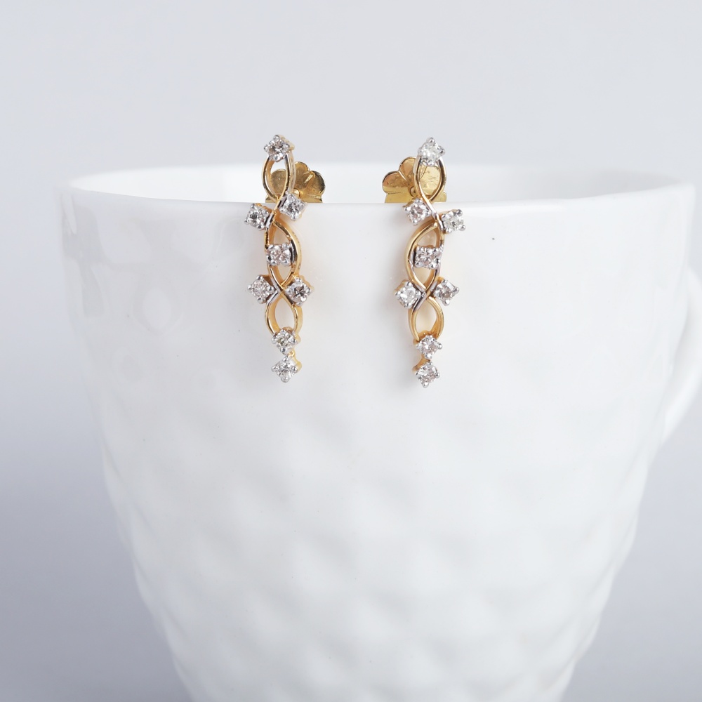 With gross weight of 3.992 grams this Ela drop diamond earrings is made in 14 kt gold with 16 diamond weighing 0.69 carat.