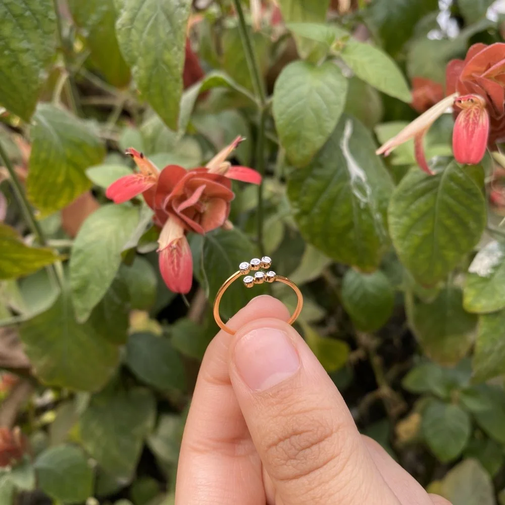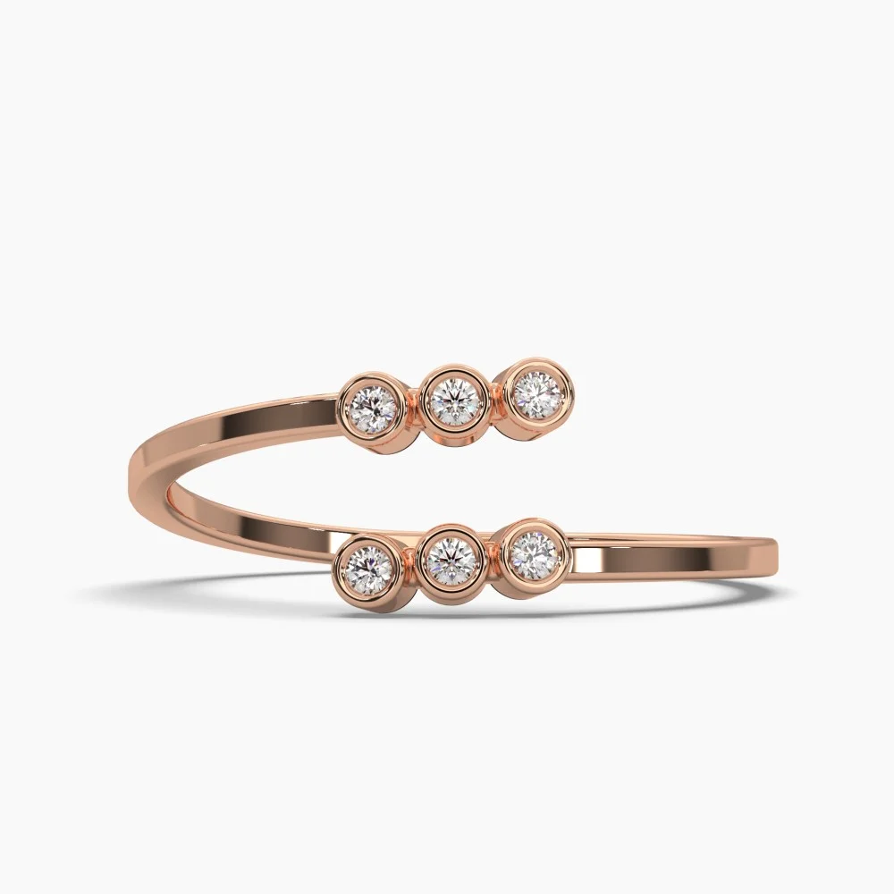 This Ela Light Weight Diamond Ring is adorned with six dazzling diamonds, offering effortless elegance and understated luxury. Its delicate design ensures comfort while showcasing the brilliance of the diamonds, making it perfect for everyday wear & office wear with a touch of sparkle.