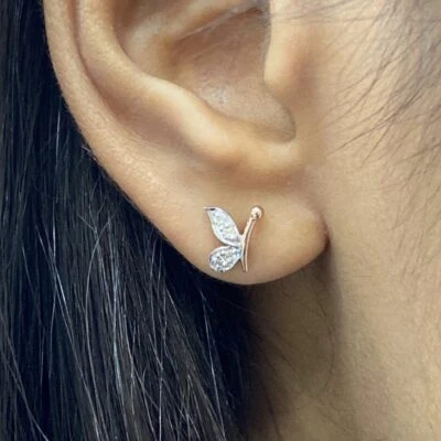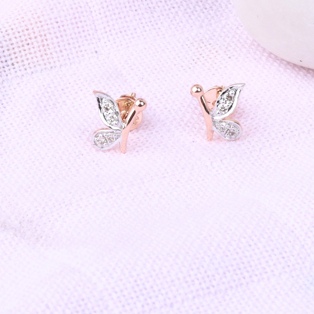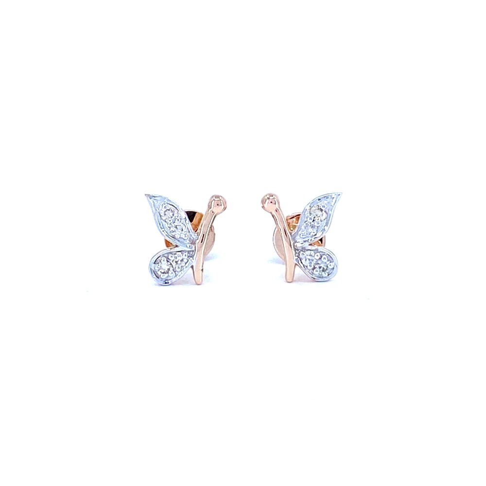 Elegant diamond earrings fashioned in the shape of half butterflies, adorned with eight sparkling diamonds. Delicately crafted, they embody grace and whimsy, adding a touch of charm to any ensemble.