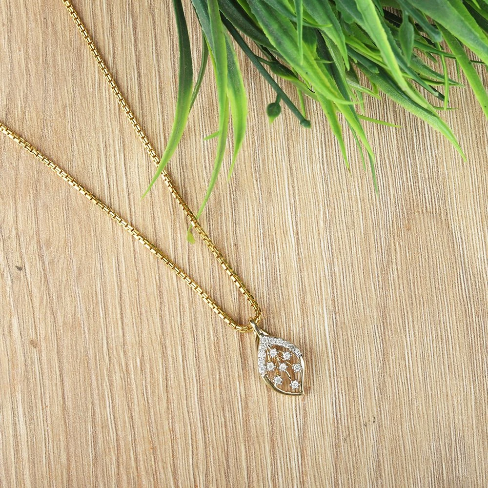 Leaflet diamond pendant is another master piece design made with 17 diamonds in 14 karat gold.