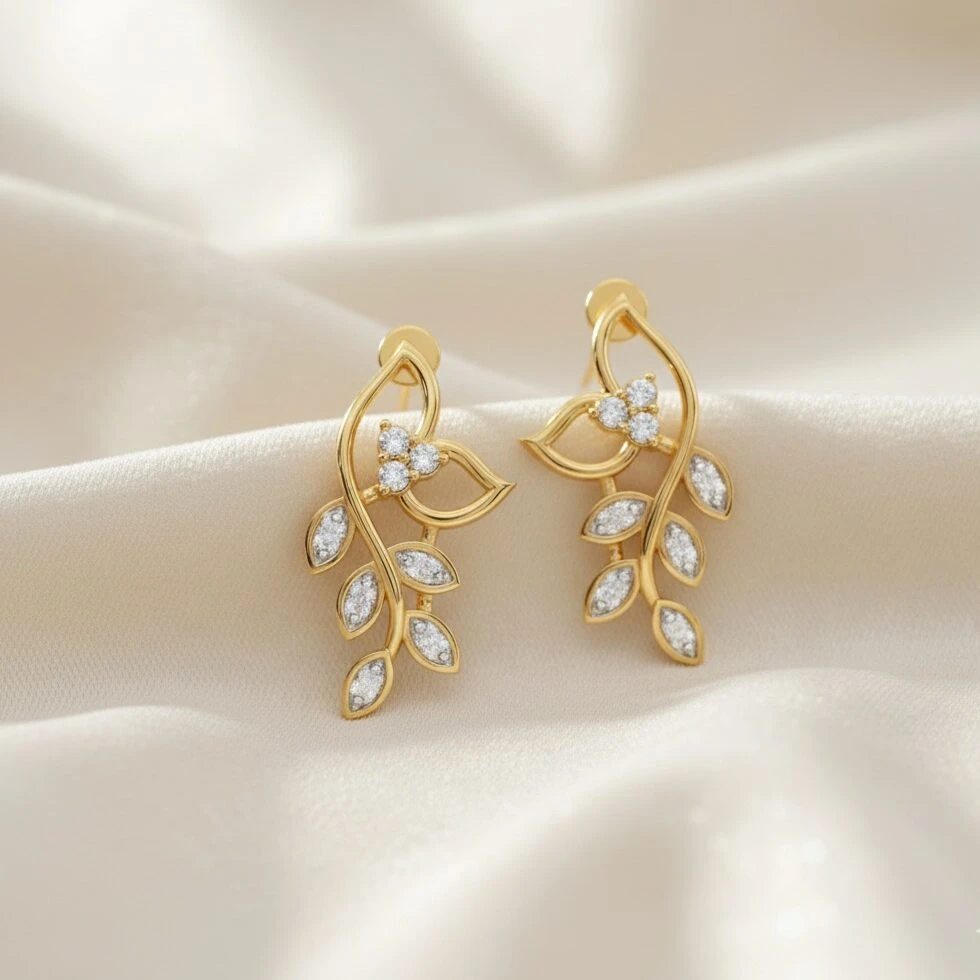 This Leaves diamond stud earrings is classic example of modern yet elegant earrings that are made to make a long lasting impression.