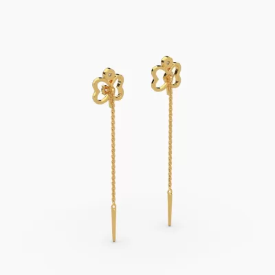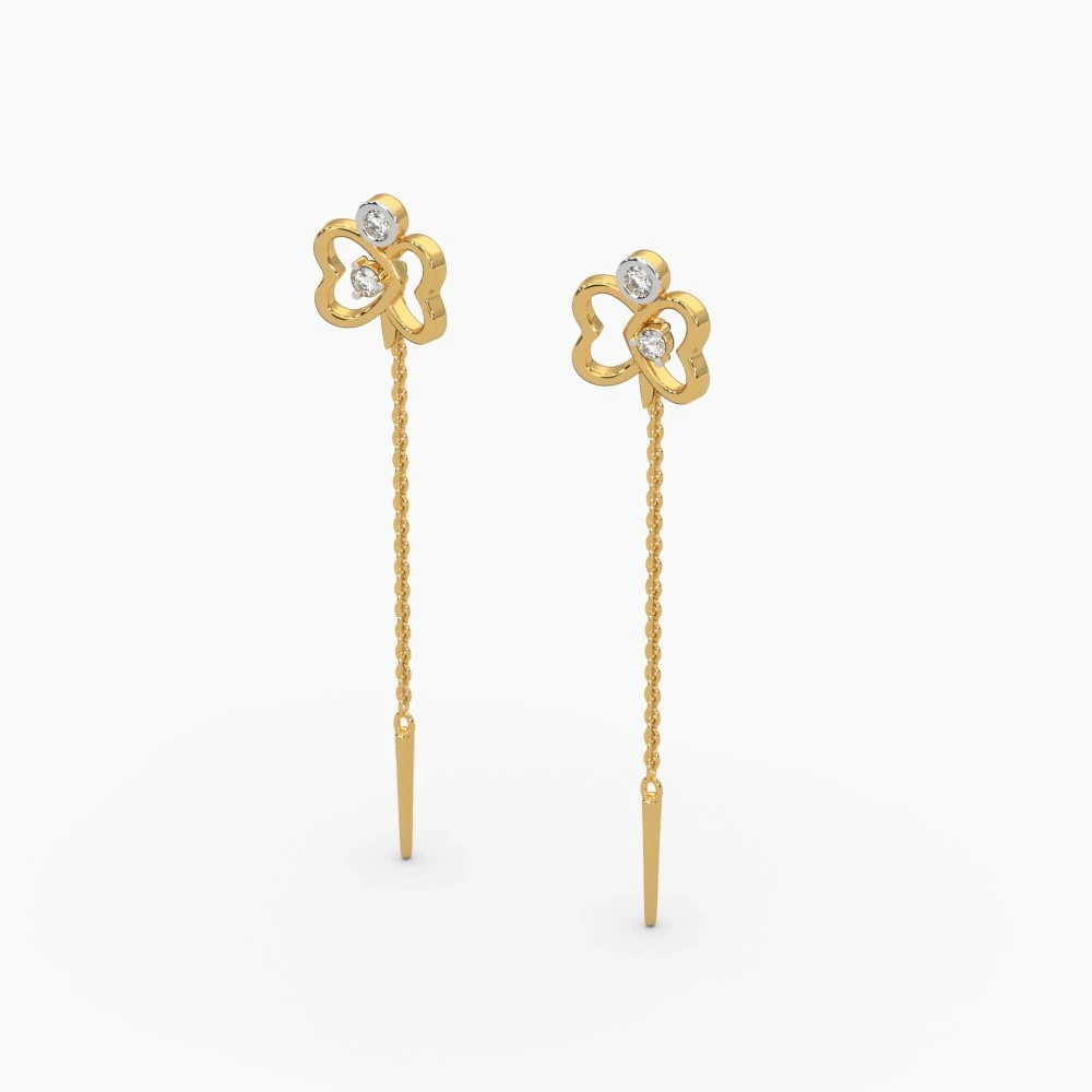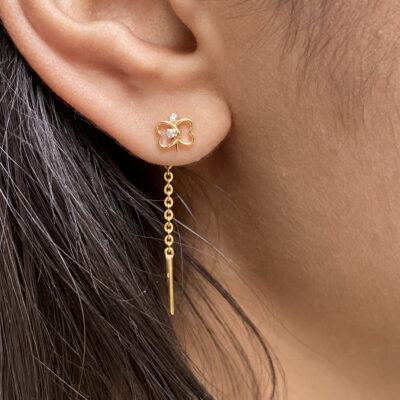 These exquisite Sui Dhaga earrings delicately balance elegance and whimsy. Each earring features two intricately crafted butterflies adorned with sparkling diamonds. A fusion of tradition and modernity, these earrings elevate any look with their graceful charm and timeless allure.