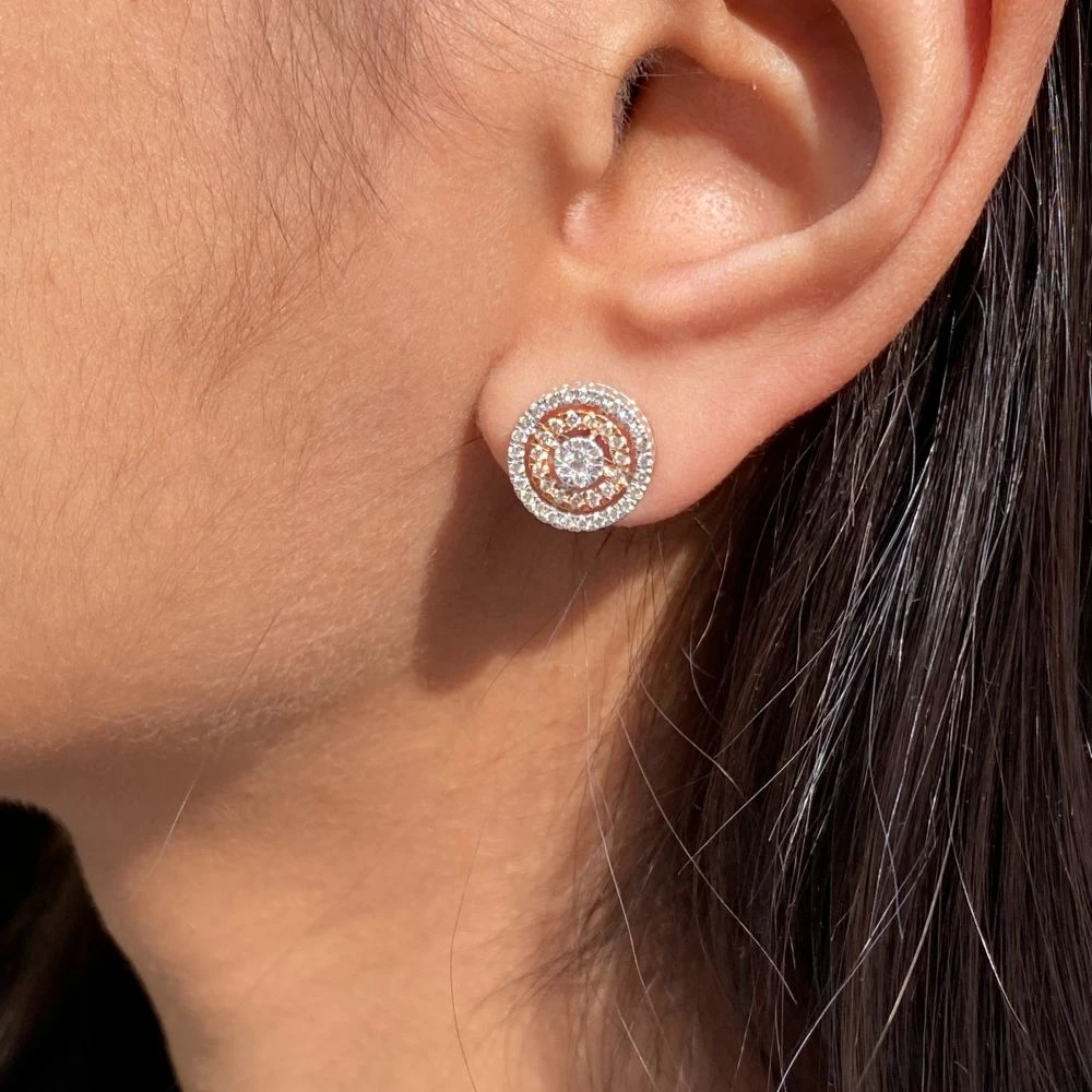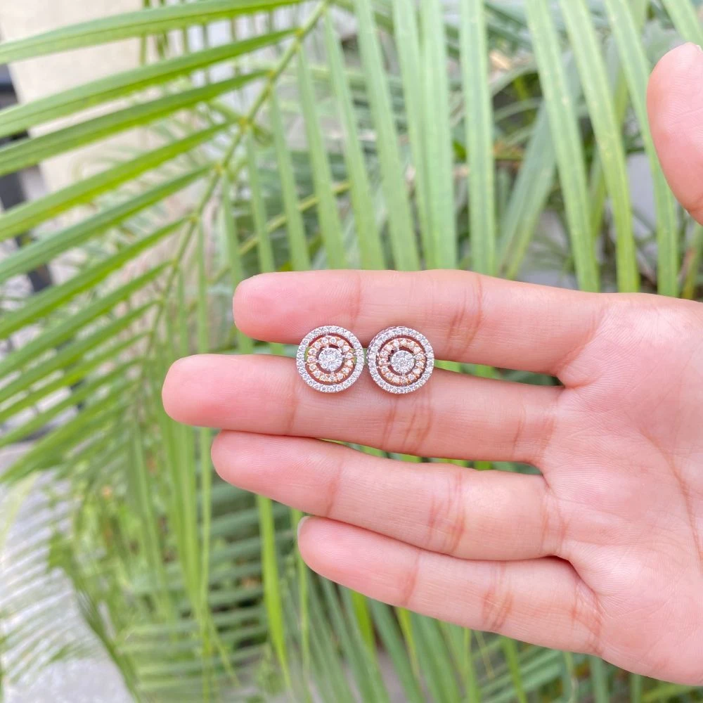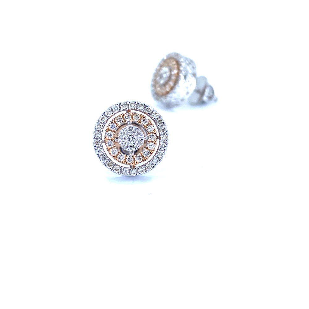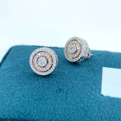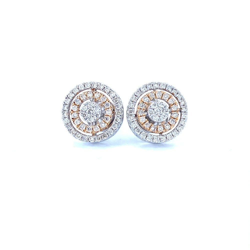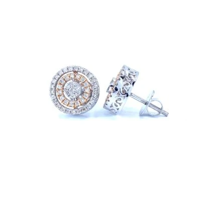 These ripple cluster diamond earrings are made in 14kt white gold with 96 diamonds weighting 0.68 ct set in a way to make center piece look like solitaire.