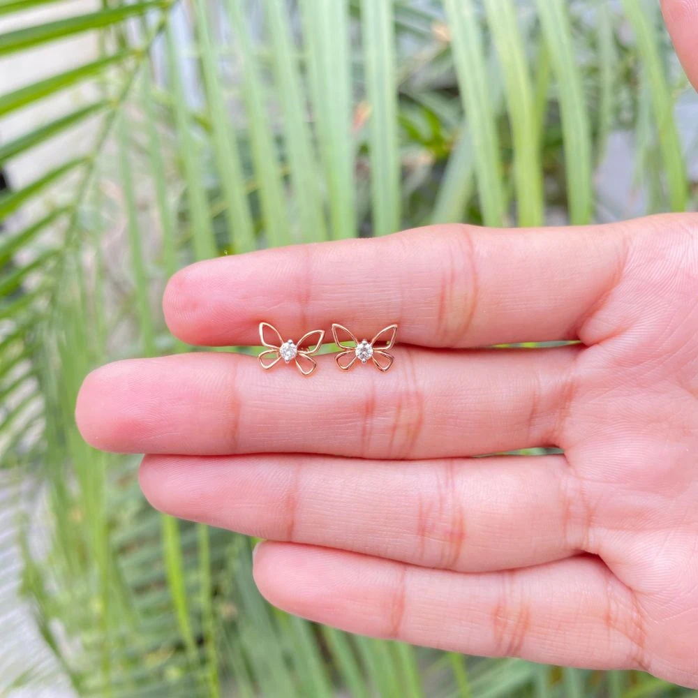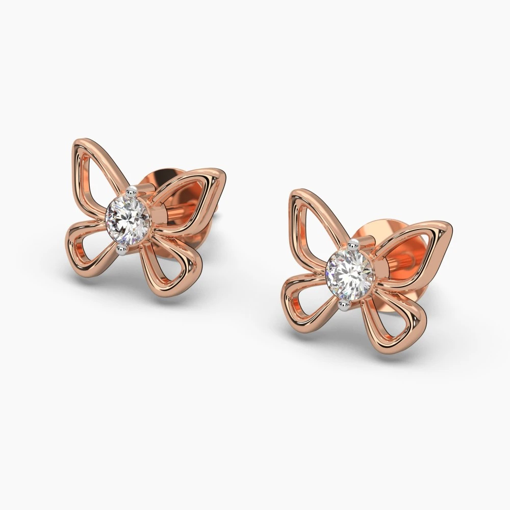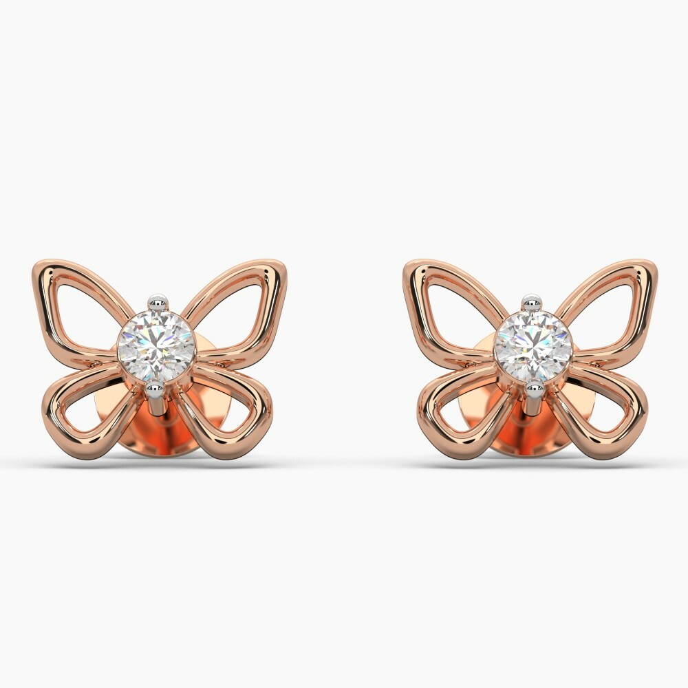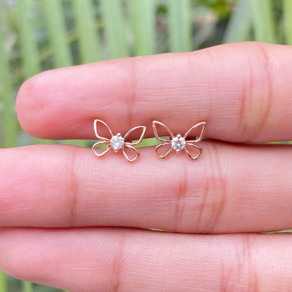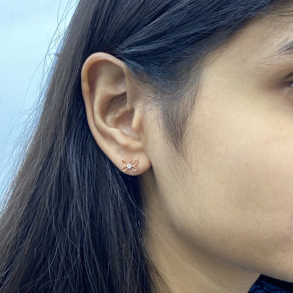 These Simple butterfly earrings are made in rose gold with each earring containing one diamond.