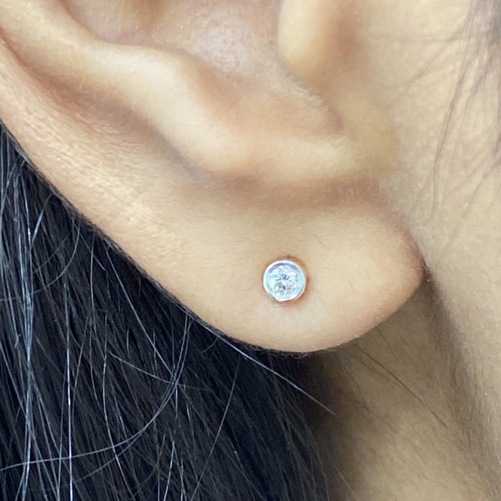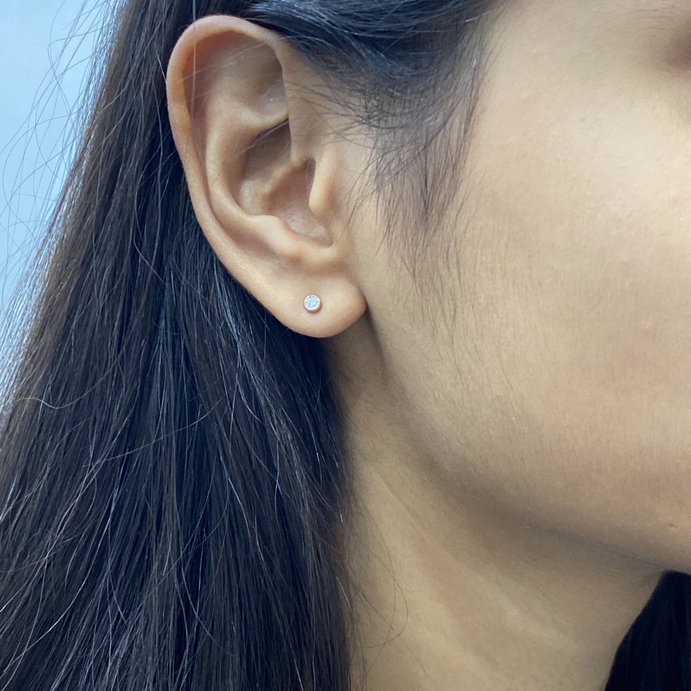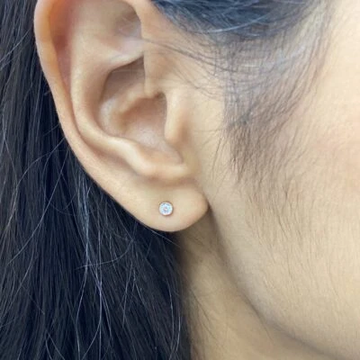 These single diamond earrings have total 2 diamonds weighting 0.10 ct.