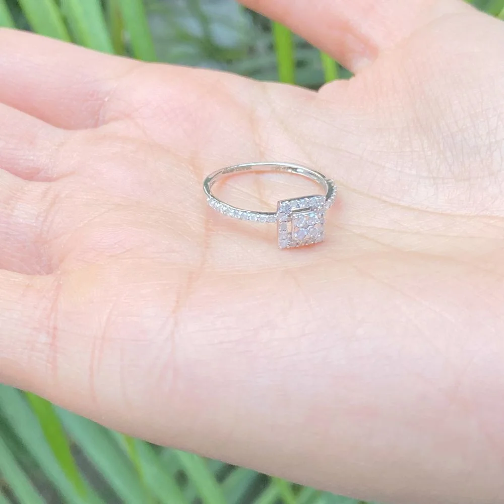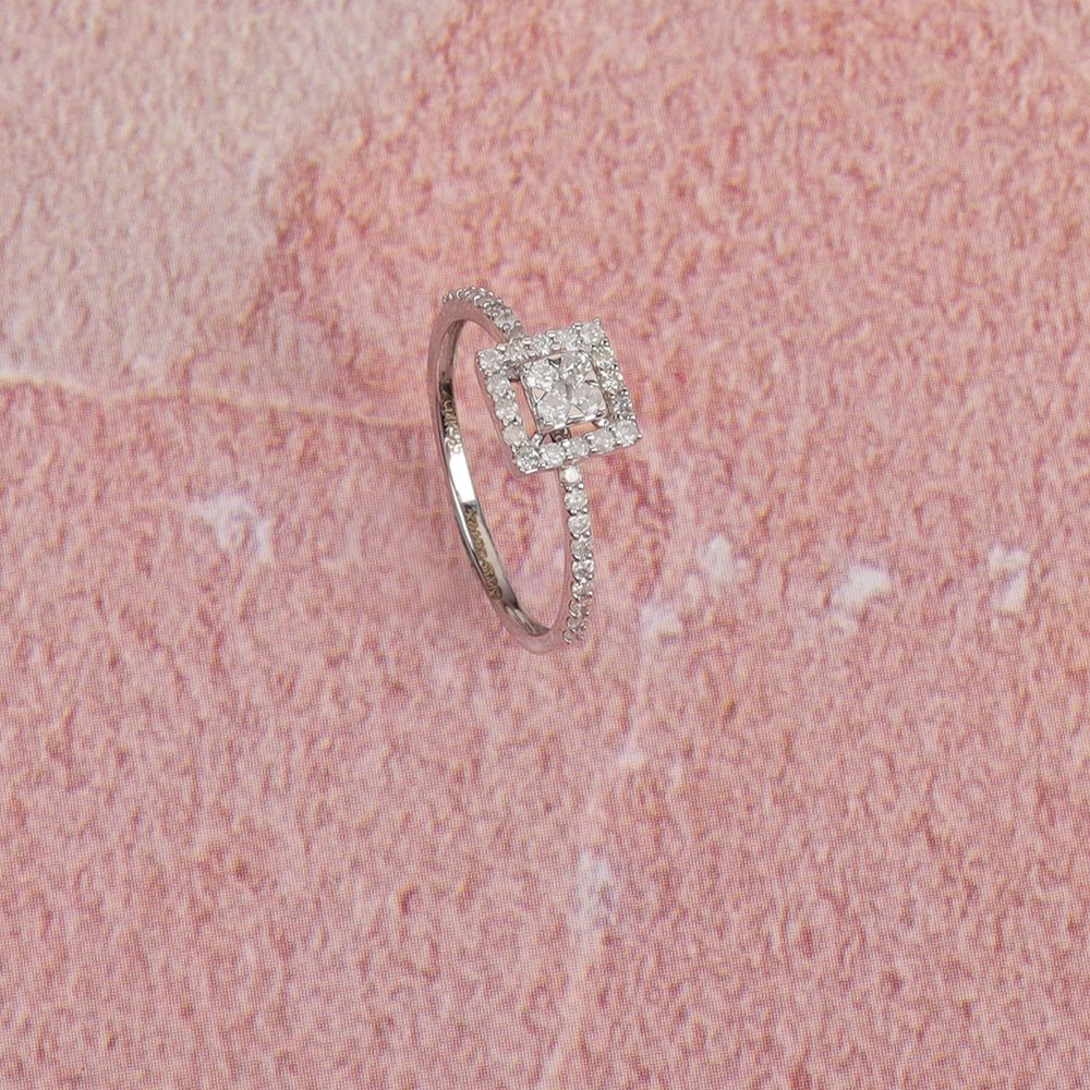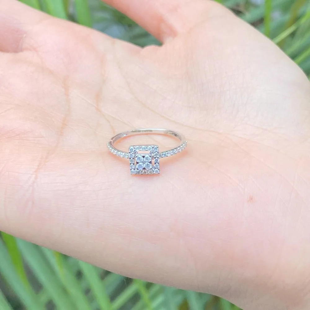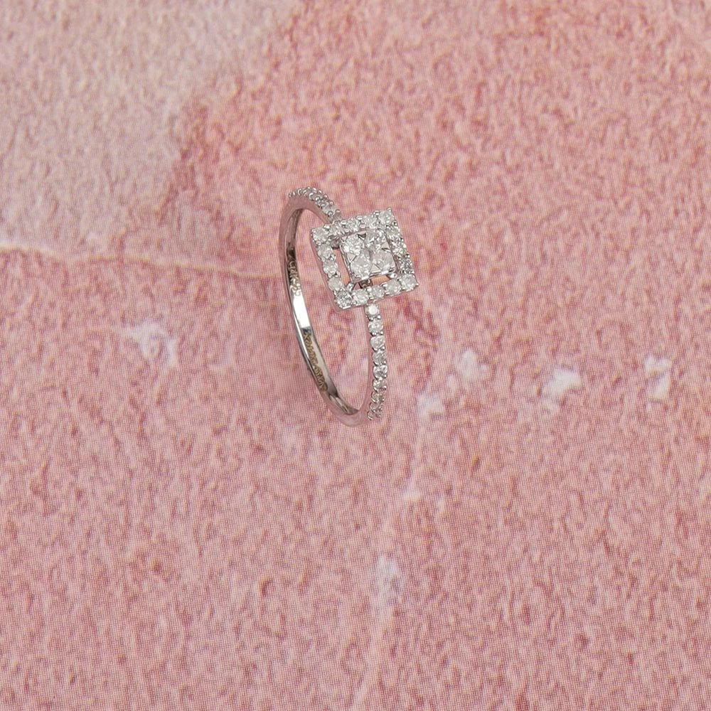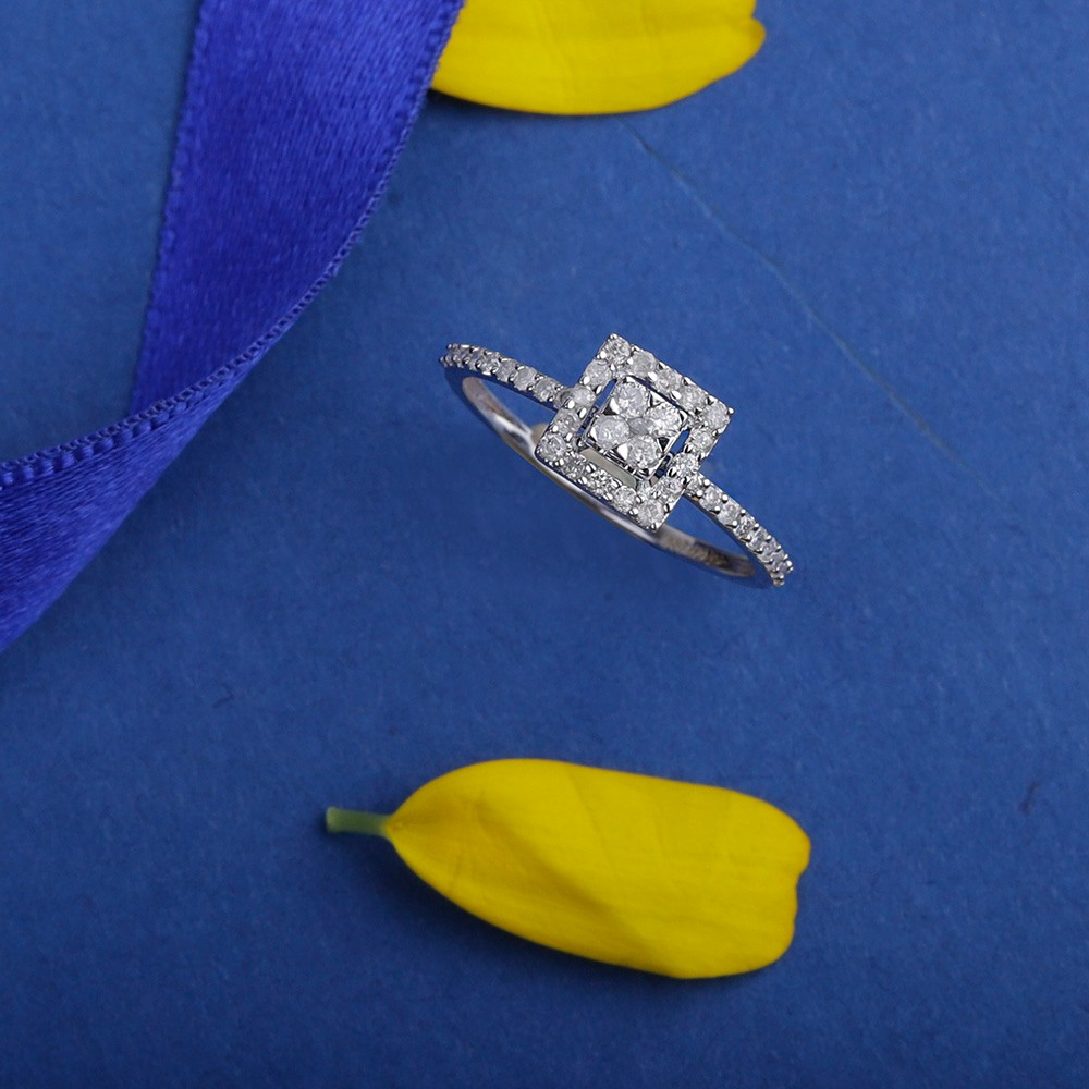 This Square cluster diamond ring is made in 14 karat white gold with 5 diamonds at the center set in way to look like solitaire.