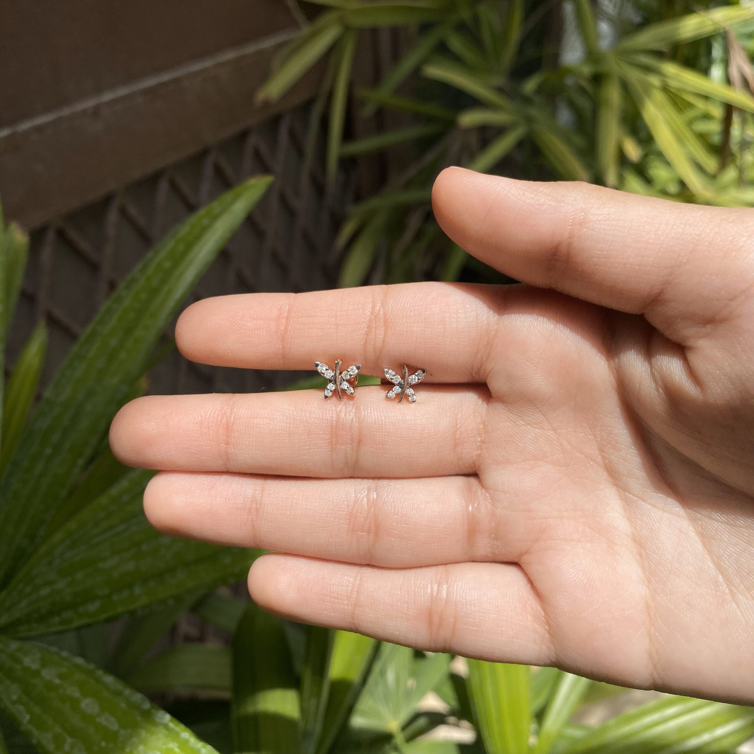 These light weight Sun butterfly diamond earrings are made in 14 karat gold with 16 diamonds weighting 0.22 carat.