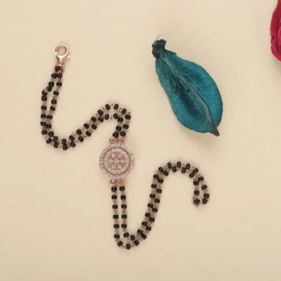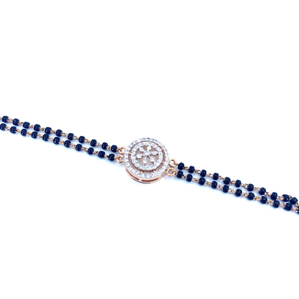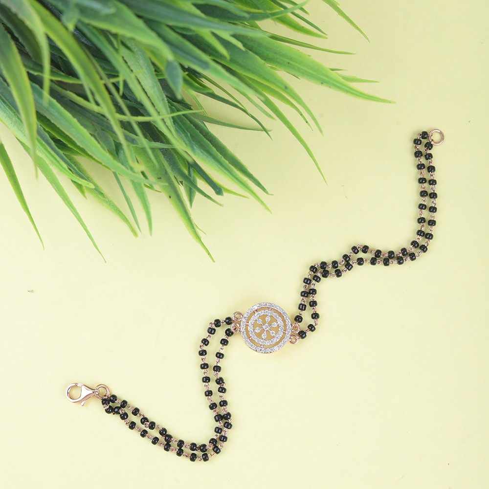 54 diamonds weighing 0.35 carat set in 14 karat gold to make this Swirl circle diamond hand mangalsutra.