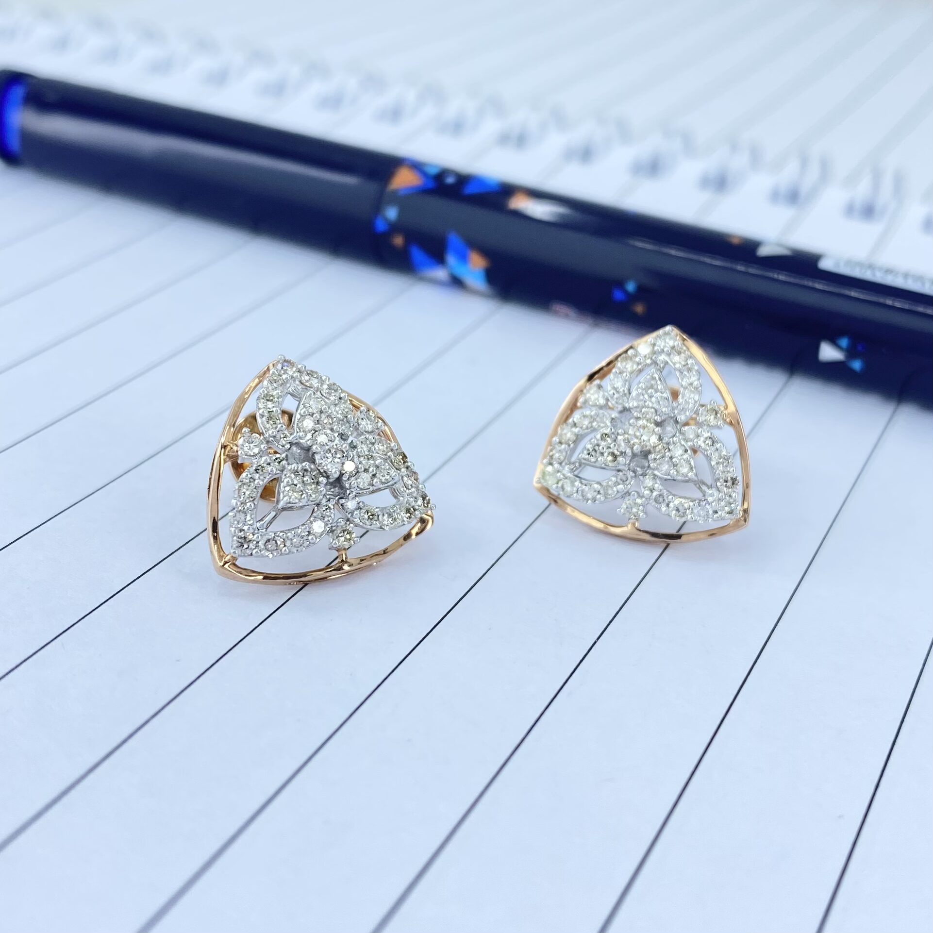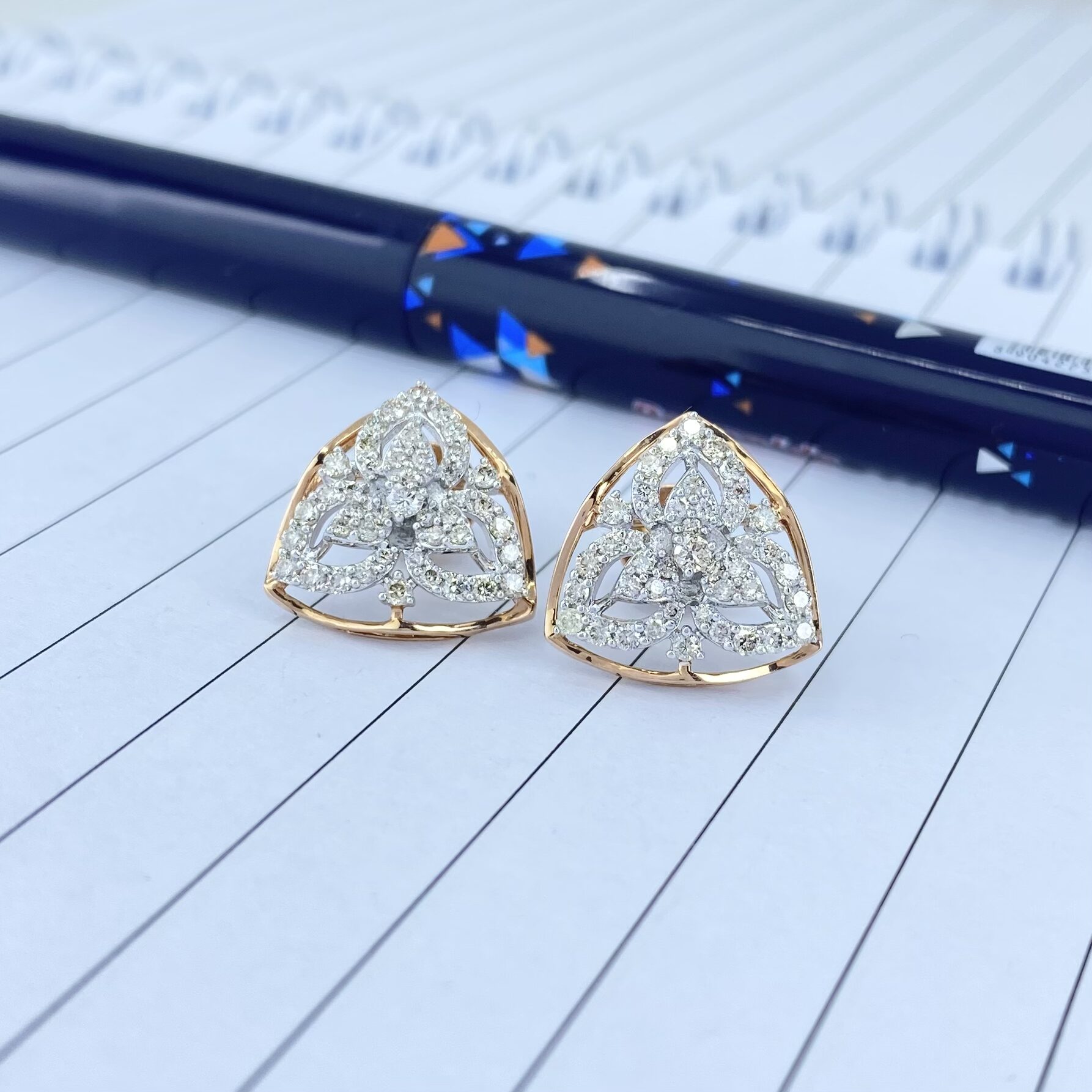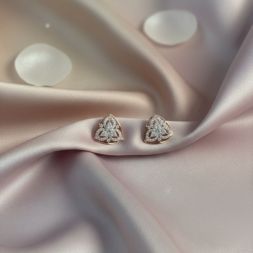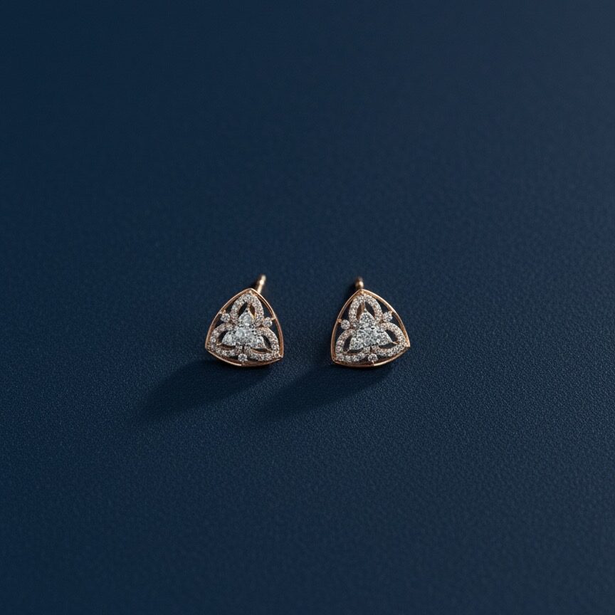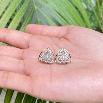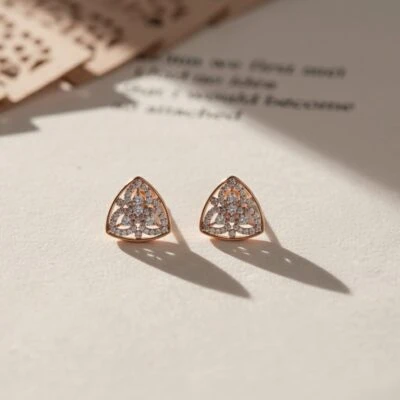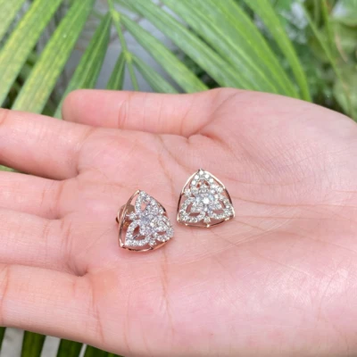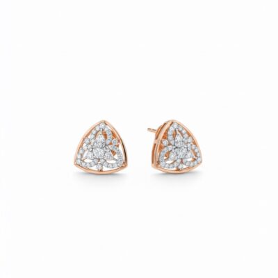 These exquisite triangular rose gold diamond earrings are adorned with a stunning array of 86 diamonds, totaling 0.96 carats. Their elegant design makes them perfect for both parties and formal functions, adding a touch of sophistication and sparkle to any attire.