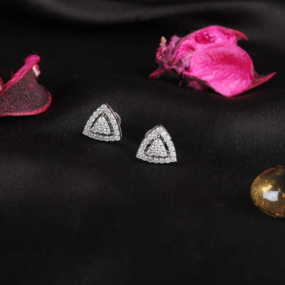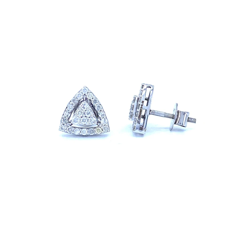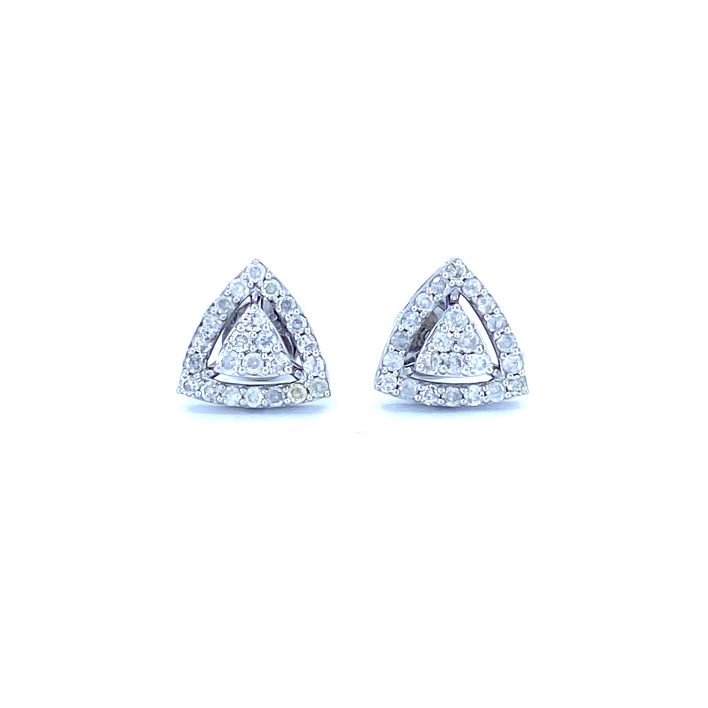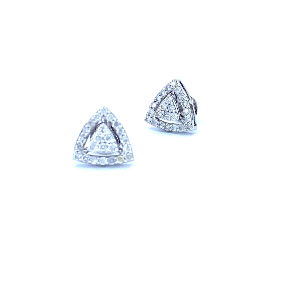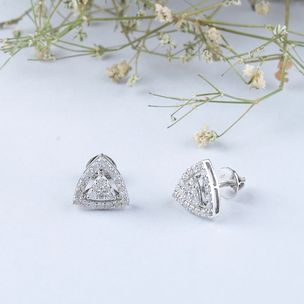 These light weight Trio cluster diamond earrings are made in 14 karat gold with 50 diamonds weighting 0.64 carat.