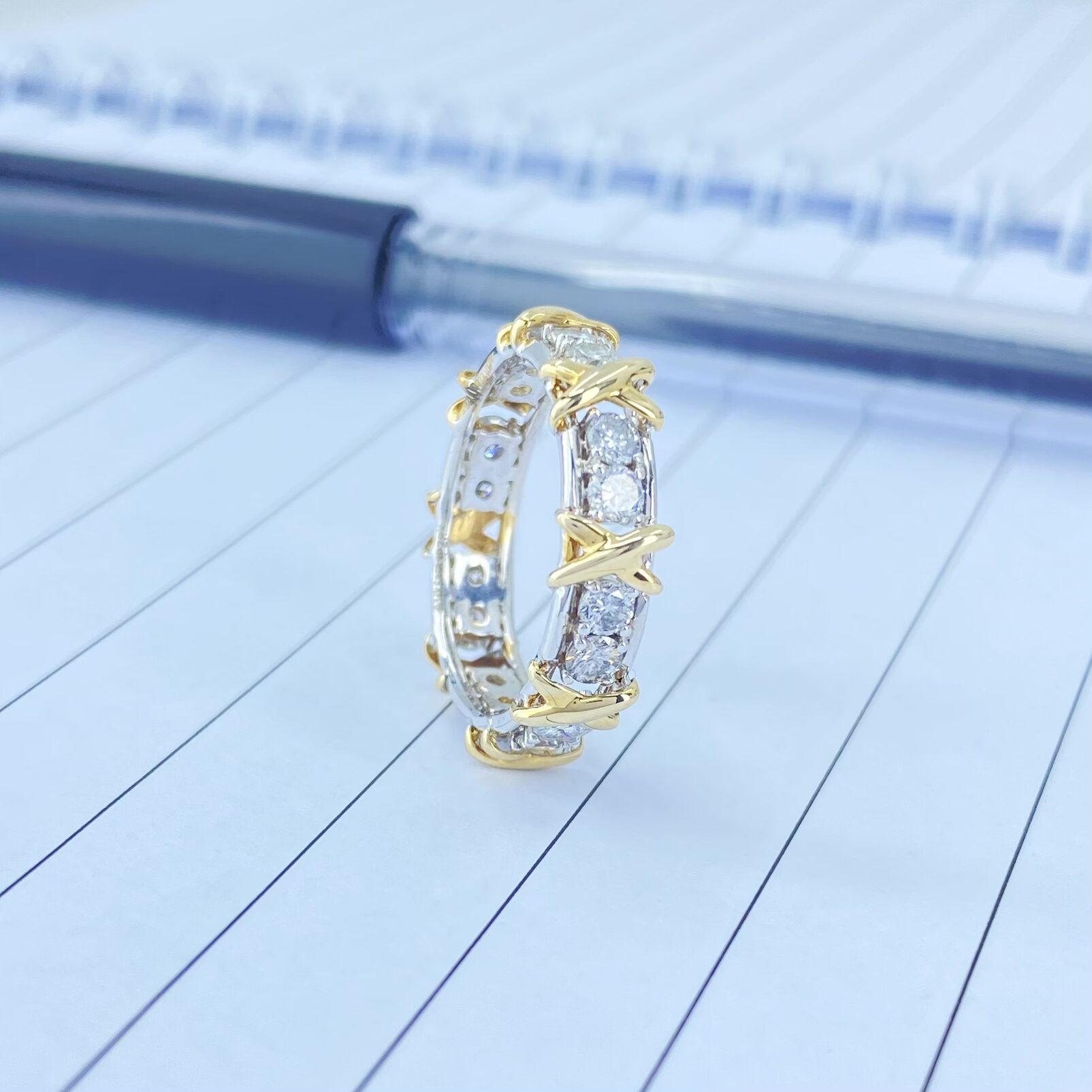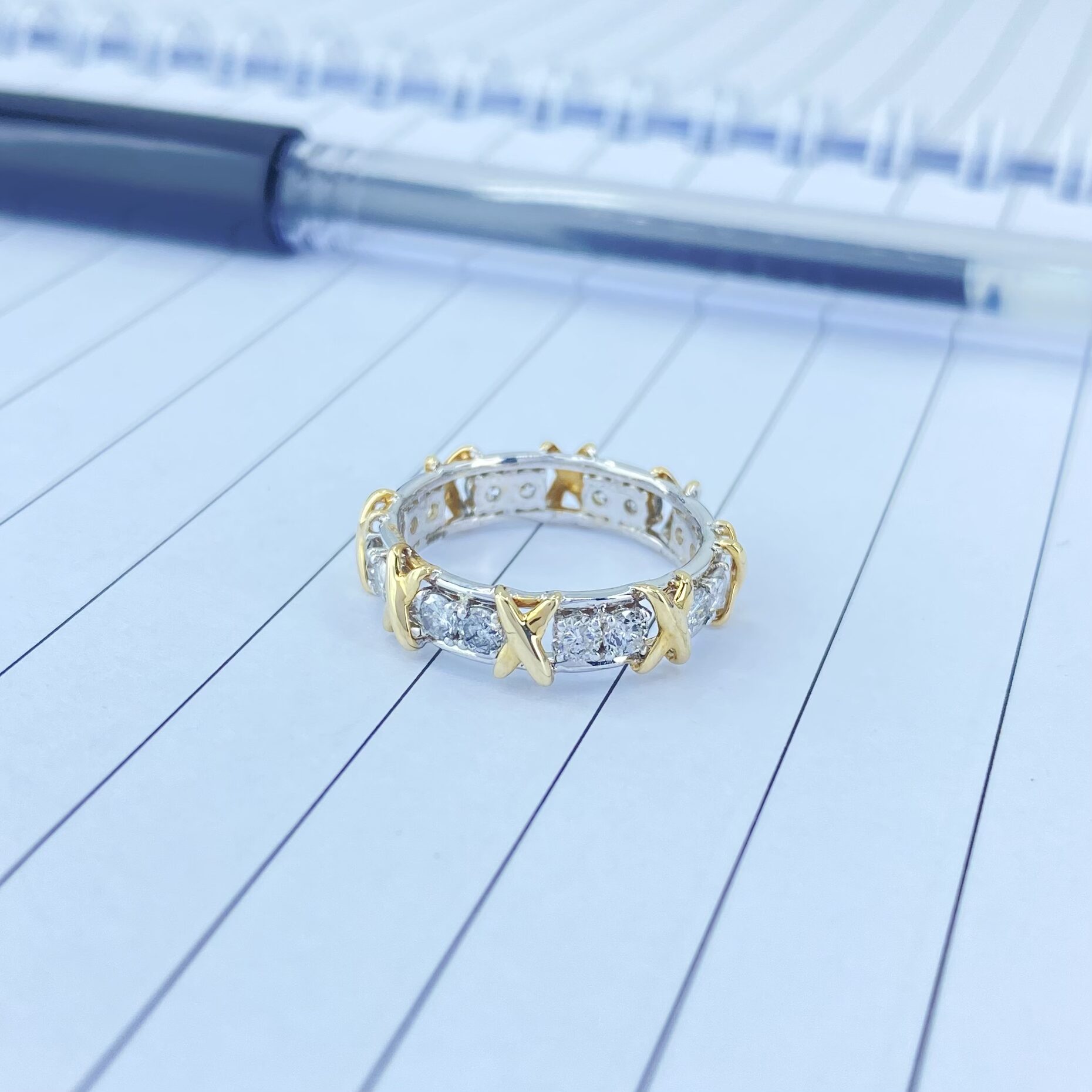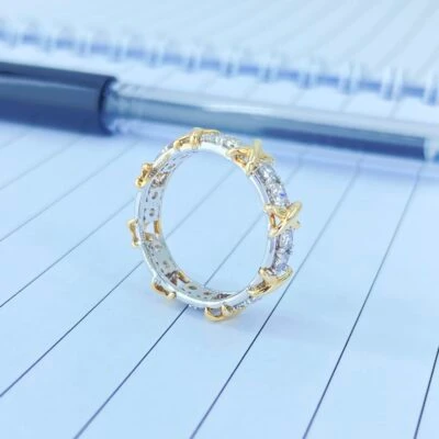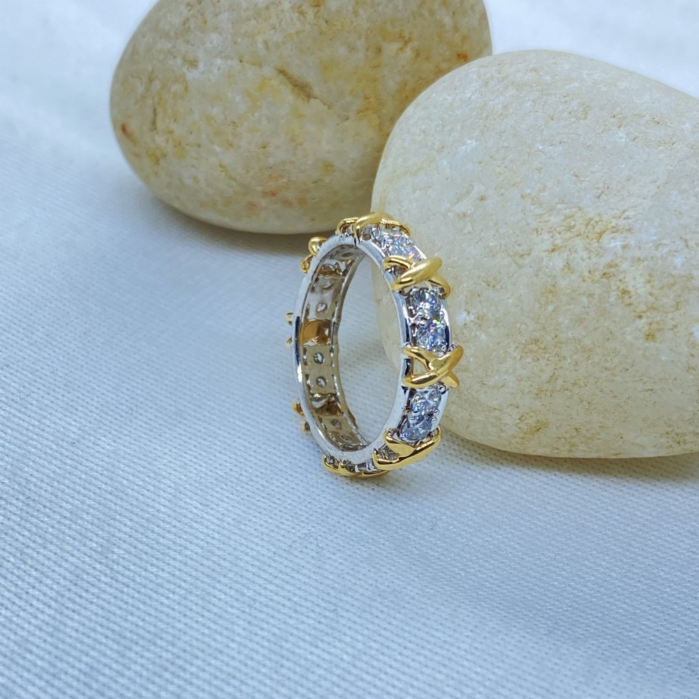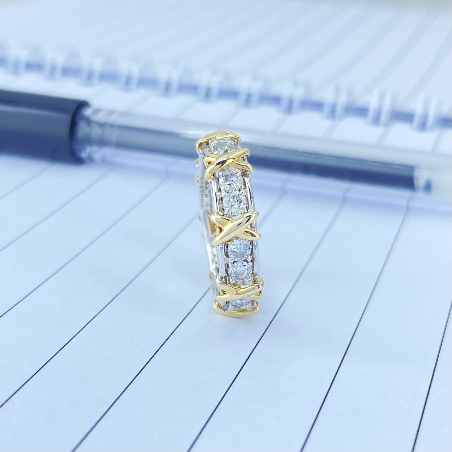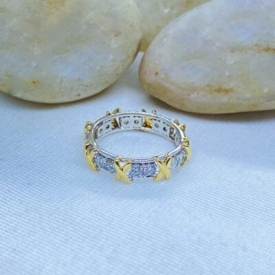 Made in 14 karat gold this white gold cross ring has been set with in total 16 diamonds in a group of two seprated by 8 golden cross.